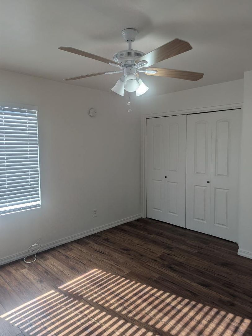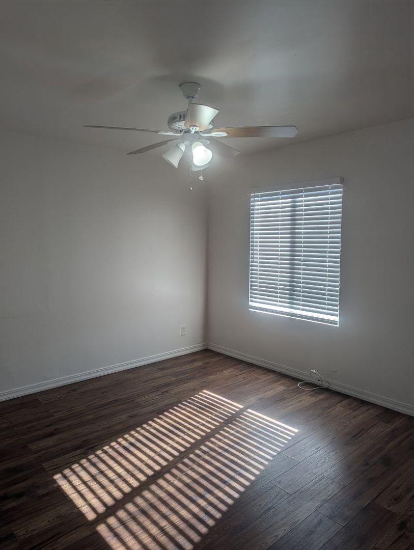 Welcome to this charming 2 bedroom, 1 bathroom front unit located in Southwest Bakersfield. This cozy home features ceiling fans throughout, tile flooring in the kitchen and bathroom, as well as hardwood-like flooring in the living areas. Enjoy your own private patio for outdoor relaxation and a large front yard for outdoor activities. The large windows allow for plenty of natural lighting, creating a bright and inviting atmosphere. Don't miss out on the opportunity to make this lovely house your new home.